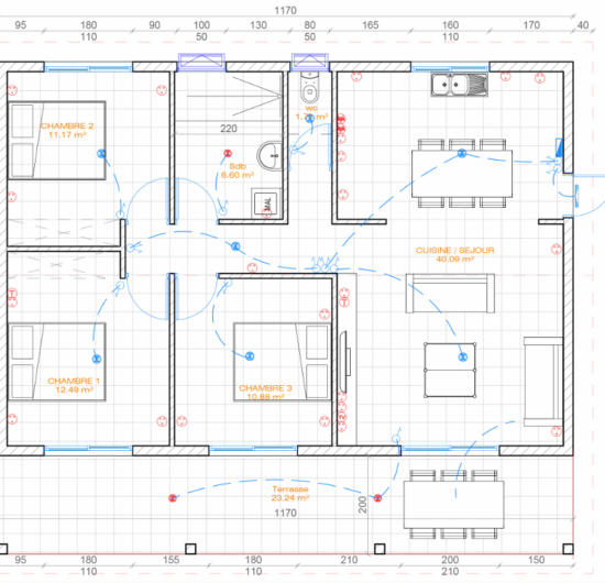 Plan optimisé avec une distribution intérieure équilibrée et lumineuse.